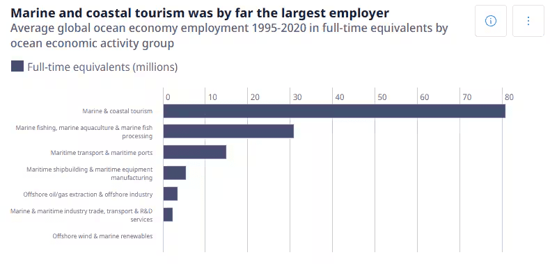 According to the OECD, over 100 million full-time jobs are sustained by the ocean economy, which has doubled in real terms since 1995.