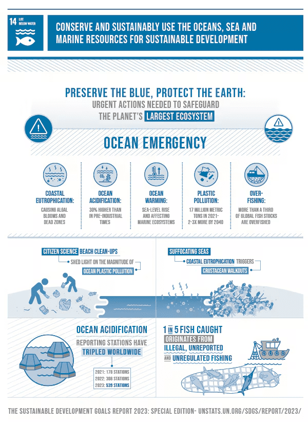 More than 30% of fish stocks are overexploited and ocean health is declining rapidly, the UN reports. UN Secretary-General António Guterres emphasized, “Our failure to care for the ocean will have ripple effects across the entire 2030 Agenda.”